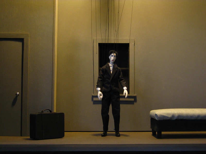 While my studio has been too filled up with puppet theater, puppets and props to start a new piece I have been doing some print making. Visit the "Prints" page to see the latest, "Dummy's Logbook (Act I)" a print that was inspired by a postcard project I've been doing with the poet Mark Decarteret. While Mark was Portsmouth's Poet Laureate in 2009, he came up with the idea of a collaborative project between poets and artists. Poets sent a poem on a blank postcard to an artist who had inspired them. The artist returned the postcard with their response on the other side. Mark and I kept going for 3 more postcards. I am planning to do a print based on each of the additional postcards as well.