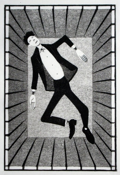 | "Untitled" 1994 9"x12" | "Man Getting Away With Something" 1997 13"x10.5" | |