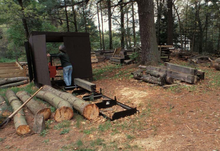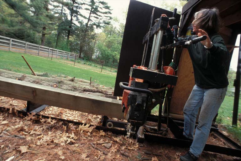 This is my sawmill. It's basically a bandsaw turned on its side that runs along a track.