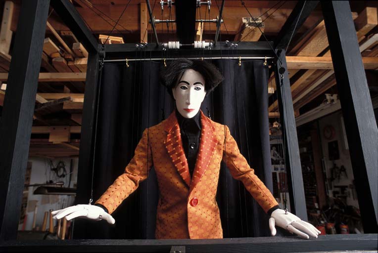 | The strings of the puppets are interconnected by a system of pulleys. | The final locations of the four puppets. |