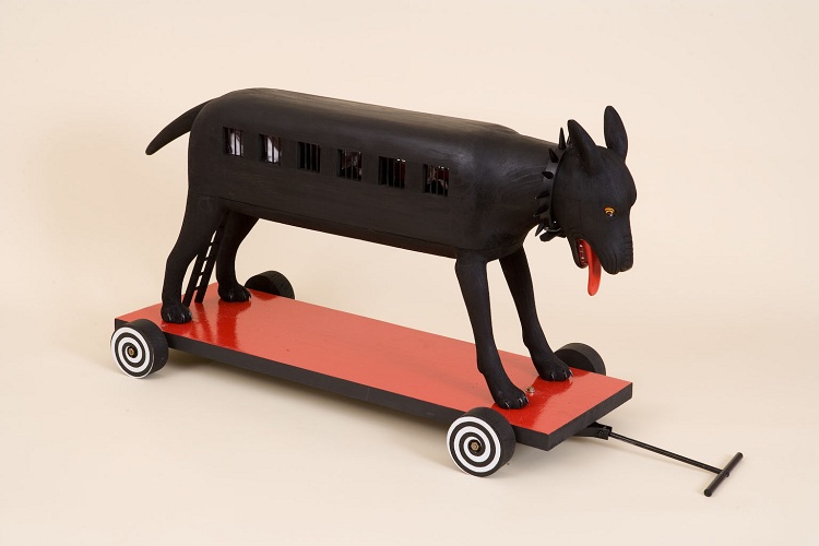 | Tau Tau 2015 30"x 15"x 15" The Tau Tau is a burial figure, commissioned by a friend. If anyone approaches he looks up. When my friend dies his ashes will be locked in the chest, the watch will be stopped, and the Tau Tau will be re-positioned to sit upright and guard the remains, looking up if anyone comes too near. |